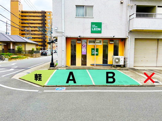 ◆アクセス◆ ・JR東海道本線『笠寺駅』東口より徒歩2分 →JR「名古屋駅」より東海道本線普通電車に乗り「笠寺駅」まで12分 →JR「金山駅」より東海道本線普通電車に乗り「笠寺駅」まで7分 ・名古屋市交通局バス停『笠寺駅』より徒歩1分 ・名古屋市交通局バス停『南区役所前』より徒歩5分 ・名鉄本線『本笠寺駅』より10分 〜お車でお越しの場合〜 駐車場は店の前に2台ございます。 ・名古屋高速笠寺出口より車で2分 ・新瑞橋より車で10分 ・テレビ塔より車で25分 ◆駐車場について◆ LEONの駐車場は店の横にございます。枠はAとBの2台分です。(CDEには停めないで下さい) なお、角のスペースにはバイクや極小型車などお停め下さい。 ※駐車場が少ない為、満車の場合は笠寺駅周辺コインパーキングをご利用ください。 注)お車の駐車は予約時間内のみ停めることができます。スペースが少ないため、終わりましたらすぐに次のお客様に駐車スペースを空けてください。